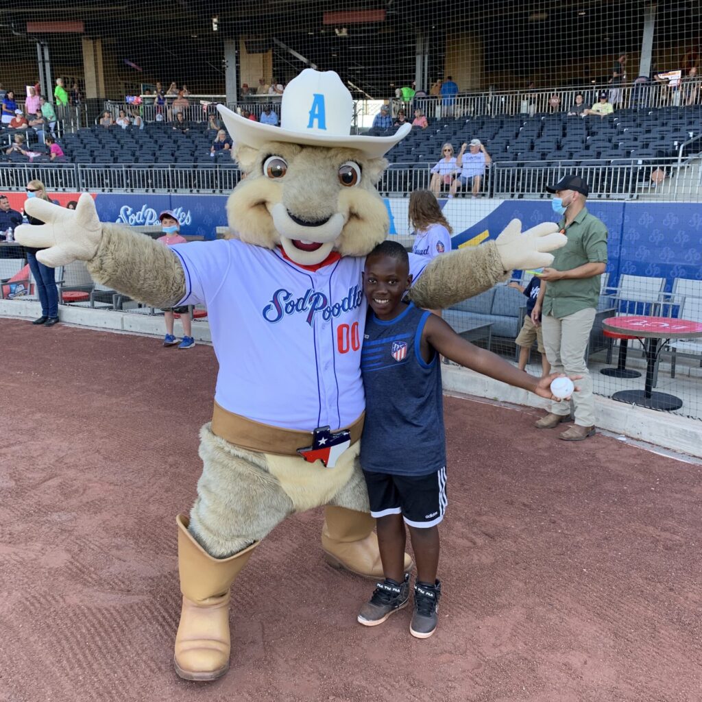 On Tuesday the 15th, Advanced Eye Care invited us to the Amarillo Sod Poodles Game. We got to talk about Mission 2540 before the game and in the broadcast booth. Samson, one of our Ridgecrest kids, got to throw out the first pitch and hang out with their mascot Ruckus on the field, and many of our kids and families got to sit in the outfield lawn to watch the game, courtesy of Advanced Eye Care. All told we had close to 50 kids and adults representing Mission 2540 at the game. It was a great night!